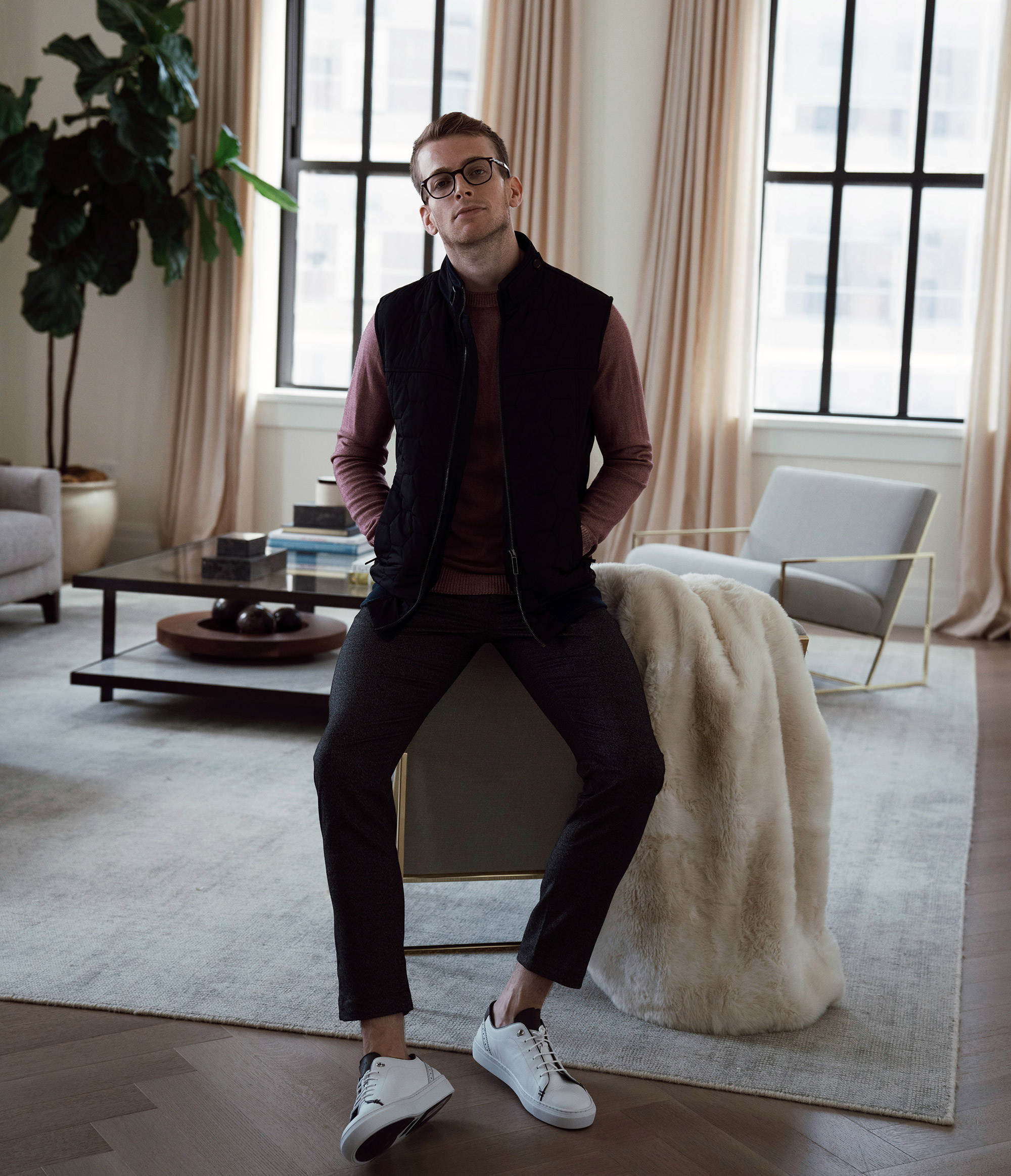 Разрабатывает мужские коллекции, учитывает современные тренды, предпочитает классику и четкие силуэты.